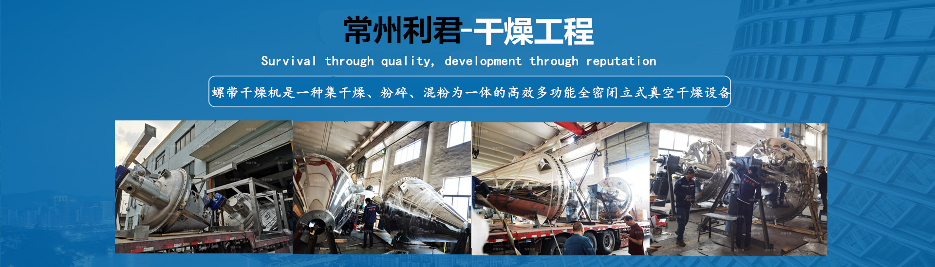 以質(zhì)量求生存,以信譽(yù)求發(fā)展,已擁有干燥、制粒、混合、粉碎、除塵、篩分、干法、濕法、脫硫、換熱、濃縮、反應(yīng)、儲(chǔ)存、蒸餾等多種系列上百個(gè)規(guī)格